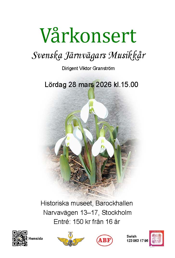 Lördag 28 mars Vårkonsert, kl. 15.00, Historiska museet, Barockhallen